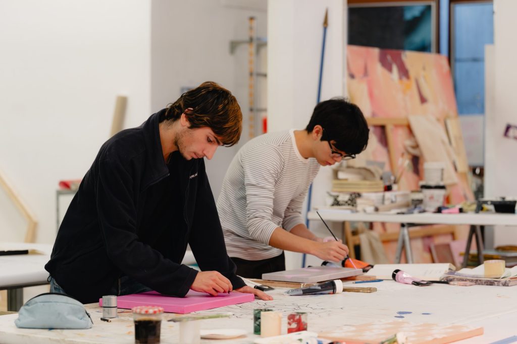 L’atelier Peinture est dédié à la pratique de la peinture pour les étudiants de la 3ème à la 5ème année (qui sont sélectionnés sur motivation et dossier personnel). L’atelier accueille aussi tous les étudiants souhaitant s’initier aux techniques de la peinture : chassis, préparation d’une toile, d’un support, encollage, préparation des couleurs (pigments, médiums), une annexe de l’atelier permet aussi la peinture au pistolet en cabine (initiation avec l’aide du moniteur).