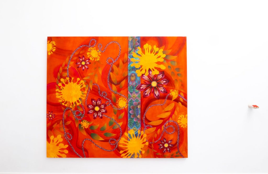 Diplômée de la Villa Arson en 2024, elle développe essentiellement une pratique autour de la peinture, mais se laisse également séduire par d’autres médiums comme la céramique ou l’installation. Son imaginaire prend source dans des références personnelles : telles que sa mémoire, ainsi que dans les récits qui ont vêtu son enfance. Pour ses compositions, Sofia puise également son inspiration dans la culture Pop(ulaire), la littérature, le monde digital et dans l’histoire de la peinture. Elle place les images comme descendant du réalisme magique. Via l’exploration de la sensation d’aigre-doux, les souvenirs deviennent fantasmes. À travers des transparences, masques et motifs, son univers se situe à la frontière entre le réel et sa propre fantaisie.